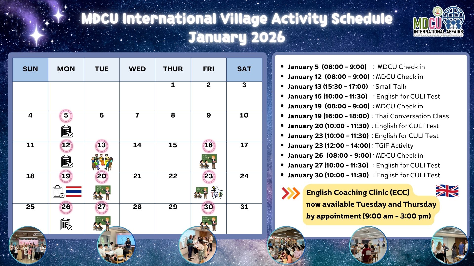 MDCU International Village Activity Schedule January 2026